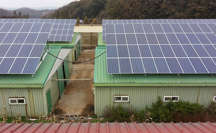 건축물인 재배사 지붕 위 태양광 설치는